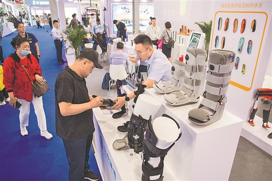 当日,在第33次全国助残日来临之际,2023中国国际福祉博览会在京启幕。本次展会为期3天,设助行移动辅具、假肢及矫形器、康复训练设备、无障碍设施及养老、沟通障碍康复/低视力等5个展区。本报记者 王伟伟 摄
