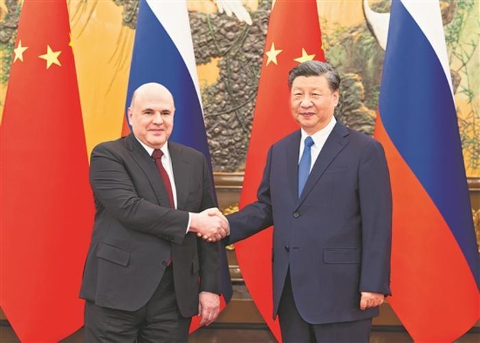 习近平请米舒斯京转达对普京总统的诚挚问候。习近平指出,今年3月,我对俄罗斯进行成功国事访问,同普京总统擘画了今后一个时期中俄关系发展和各领域合作蓝图。巩固好、发展好中俄关系,既是民心所向,也是大势所趋。希望双方继续发挥中俄合作空间大、前景广、动力足的优势,把各领域合作推向更高水平,不断丰富两国新时代全面战略协作伙伴关系的内涵。