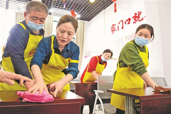 5月24日,江苏省连云港市连云区职工家政技能培训基地在南巷社区建成投用,首期15名学员参加家庭保洁班的学习。连云区总工会为提高服务业职工从业技能,投资建成可培训月嫂、钟点工、育儿嫂、家庭保洁、衣橱收纳等多行业职工技能实训基地,免费培养满足社会和家庭所需的家政从业人员。本报通讯员 朱华南 摄