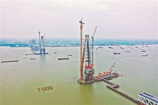 常泰长江大桥主塔上塔柱钢塔全面施工