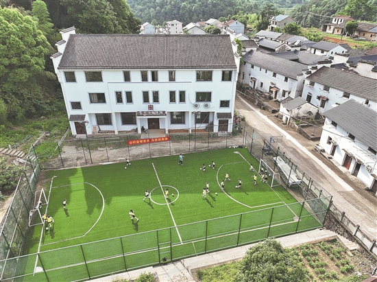 浙江绍兴诸暨市浬浦镇中心学校依托村镇足球场、中医药文化体验中心等,开展足球、木球、五禽戏等特色项目,为体育教育注入活力。新华社记者 翁忻旸 摄