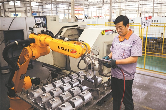 5月25日,山东双港活塞股份有限公司的生产车间内,李为刚正在调试机器设备。