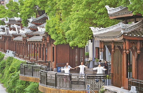 近年来,宣恩县通过“微改造”在穿城而过的贡水河两岸建设特色民族风情走廊,以“一线串珠”的方式打造山城特色景致,不断提升居民生活的舒适度。新华社发(宋文 摄)