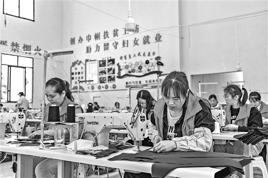 今年以来,重庆市城口县沿河乡积极引导劳动密集型企业开设“家门口的工坊”,实行“培训+订单+就业”的运营模式,既解决了企业用工不足的问题,又方便群众在家门口就业增收,实现挣钱顾家“两不误”。目前,沿河乡服装加工工坊吸纳村民就业40余人,人均月增收1500至2500元。新华社记者 黄伟 摄