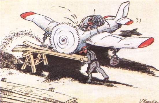 几个“聪明人”将电锯盘安装在飞机的螺旋桨上,这样锯木料省了些许力气,但是大材小用,浪费资源,损失之大难以计算。