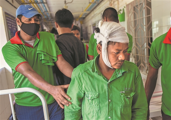 这是当地时间6月4日在印度奥迪沙邦巴拉索尔的一家医院内拍摄的列车脱轨相撞事故伤者。新华社发(贾韦德·达尔 摄)