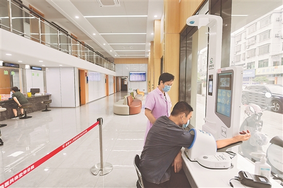 6月7日,在诸暨市安华镇卫生院刚改建完成的健康服务中心内,居民在进行体检。
