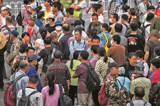 人们有的从附近城中村里走出,有的从街头醒来,从零零散散的几个人到人声鼎沸,只用了不到一个小时的时间。