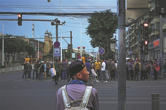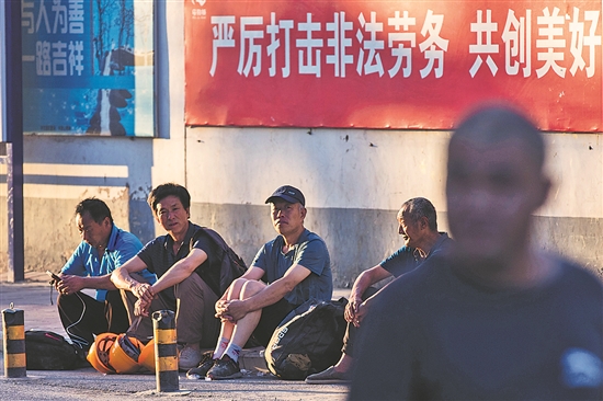 这是一个自发形成的劳务市场,在这两条街上集中着二三十家劳务中介公司,因此这里也被称为“劳务一条街”。由于特殊的地理位置和低廉的房租,不少外来务工人员常将这里作为来京务工的第一站,生活、趴活、上工……周而复始。与正规招聘市场的劳务人员不同,这里的劳务工年龄普遍偏大,他们没有学历和技术做敲门砖,有的只是一身力气。