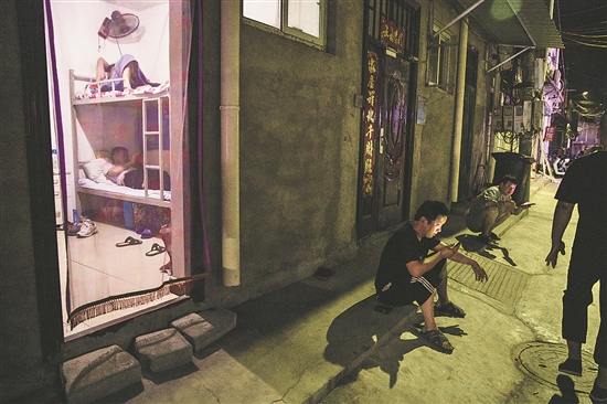6月8日晚,紧邻漷马路的城中村。在这里,一晚上20多元就能租一个床位。