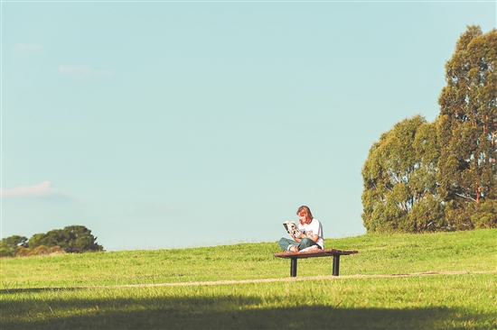 近日,在澳大利亚维多利亚州墨尔本的吕费湖公园,一位当地姑娘独自坐在公园的凳子上读书。