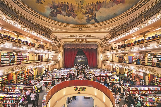 这是当地时间6月10日在阿根廷首都布宜诺斯艾利斯拍摄的雅典人书店。
