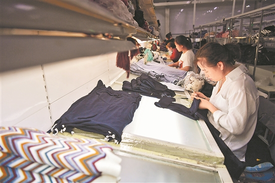 6月10日,工作人员在宁夏灵武羊绒产业园区一家羊绒加工企业制作羊绒成衣。