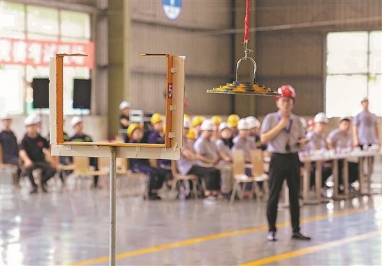 本次技能竞赛科目设定为行车吊装作业竞赛,选手们来自五矿发展下属10家生产企业。竞赛分理论考试和实际操作两部分,行车实际操作分为交叉高低杆穿行和平稳降落两项。赛程中,选手们纷纷亮出“看家本领”,在比拼中互学互鉴、各展风采。本报通讯员 杨京京 摄
