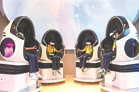 6月19日,在广西禁毒教育示范基地,学生们通过VR设备认识吸毒的危害。