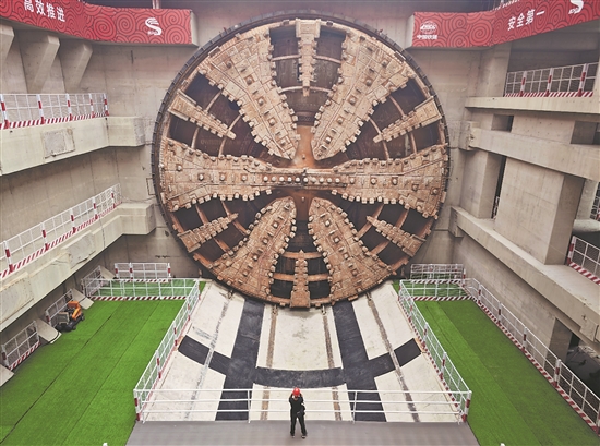 图为6月28日,国产最大直径盾构机——“京华号”盾构机出洞。新华社记者 邢广利 摄