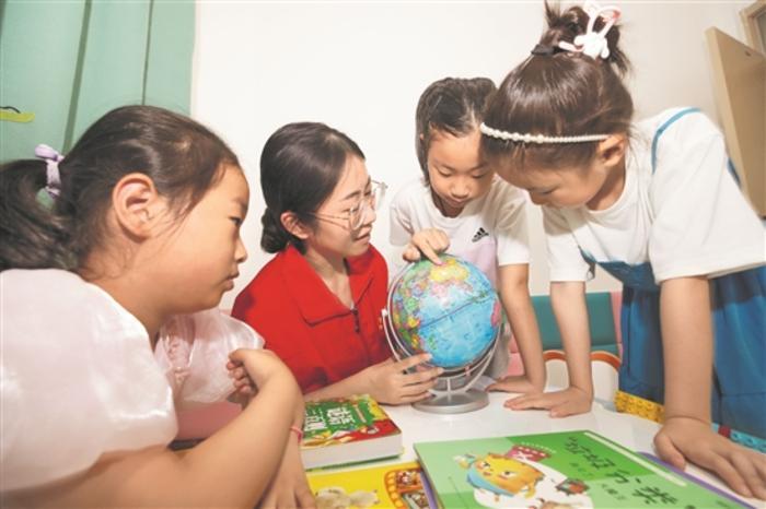 6月28日,安徽省淮北市总工会职工子女托管班内,志愿者在给孩子们讲解环境保护常识。暑假伊始,淮北市总开办职工子女假期托管班,组织志愿者开设作业辅导、科学实践等课程,解决职工子女假期“看护难”的问题。本报通讯员 张锋 摄