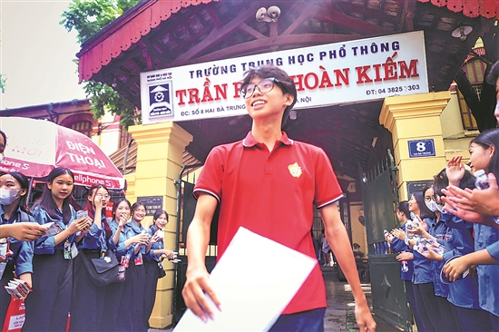 当地时间6月28日,2023年越南高中毕业考试拉开帷幕。全国有超过100万名考生参加考试,成绩将用于高中毕业与大学入学。图为一名考生走出越南首都河内一处考点。