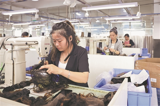 在湖南省邵阳市,多家发制品企业的车间内,工人们加紧生产发往尼日利亚、南非等国的订单。在大洋彼端,这些设计多变又物美价廉的“邵阳造”假发,受到大批非洲女性的追捧。6月29日,第三届中非经贸博览会在长沙开幕,以发制品为代表的邵阳轻工产品也参展。