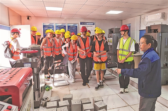 近日,兰州交通大学土木工程学院240余名师生走进中铁七局兰合铁路项目工地进行观摩学习。师生们来到施工现场,近距离了解兰合铁路项目工程的概况、各单位施工工序和各种施工工艺的原理、步骤、质检方法等,为将来走向工作岗位打下坚实基础。本报通讯员 胡苗苗 方知峰 摄