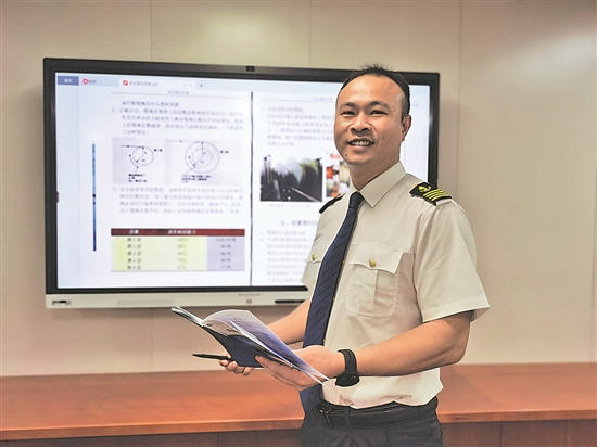 许双运在对船员进行《安全系泊手册》培训。受访者供图