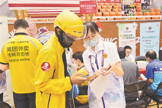 据悉,西城区22家单位将集中在7月组团为新就业形态劳动者提供包含暑期亲子营、小哥联谊、文化活动、生活服务、清凉一夏等活动在内的7大类24个服务项目。图为活动现场。本报记者 赖志凯 摄