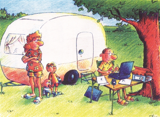 忙碌多日的一家休假之期到郊外游玩,可是有工作“狂”的丈夫仍忘我工作。他的举动遭到妻子孩儿的白眼——尴尬是自找的。
