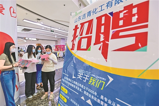 7月15日,求职者在山东省青州市举办的企业推介暨人才招聘会上了解用工信息。暑期,多地举行人才招聘会,为企业和求职者牵线搭桥,促进就业。新华社发(王继林 摄)
