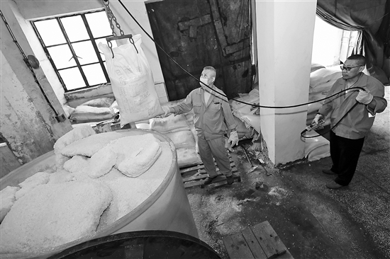 7月11日,铁路上海站综合车间司炉工在为离子交换器盐池进行加盐作业。清晨,司炉工们便忙碌起来。他们将经过处理的自来水接入炉体内,通过高温蒸发产生蒸汽,再通过管道输送至制冷机组,作为制冷机组的动力源,最终从锅炉“烧”出冷气,输送到候车室内。高温天气下,司炉工用他们的坚守保障旅客夏日的清凉。 新华社记者 王翔 摄