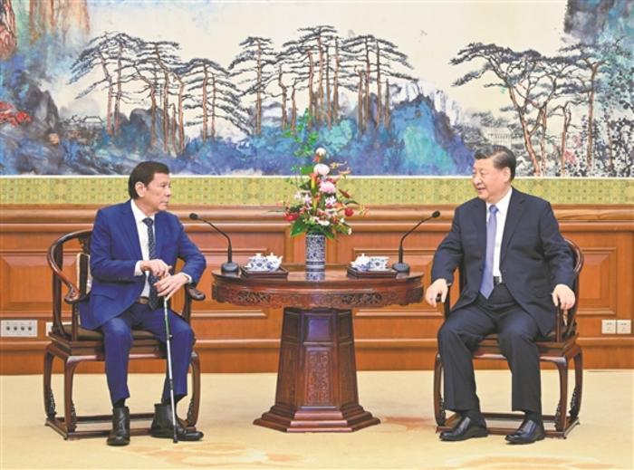 7月17日下午,国家主席习近平在北京钓鱼台国宾馆会见菲律宾前总统杜特尔特。 新华社记者 殷博古 摄