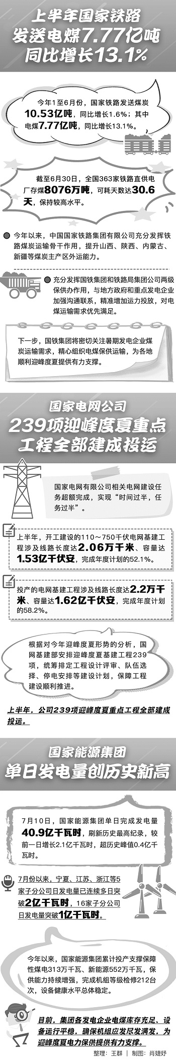 上半年国家铁路发送电煤7.77亿吨 同比增长13.1%