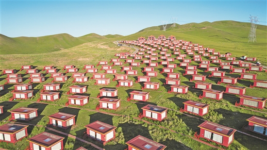 7月18日,青海省海北藏族自治州海晏县文迦牧场,由返乡大学生创办的酒店房舍沐浴在阳光中。