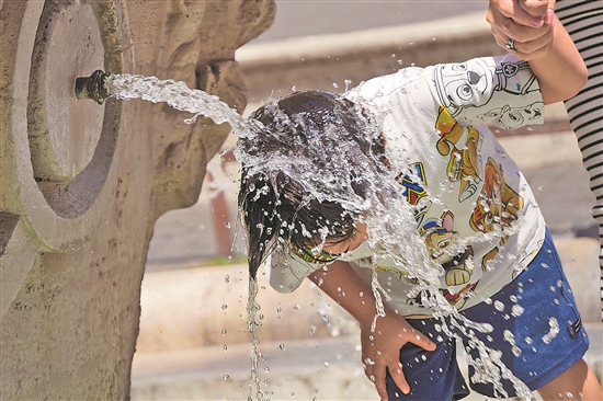 当地时间7月18日,一名儿童在意大利罗马西班牙广场的喷泉冲凉。罗马18日最高气温超过41摄氏度,是今年以来当地最高气温。 新华社记者 金马梦妮 摄