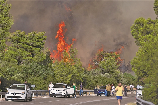 这是当地时间7月18日在希腊雅典郊外曼兹拉附近拍摄的野火。由于连日遭遇极端高温,希腊首都雅典郊外17日发生两起野火,导致数以千计人员疏散。