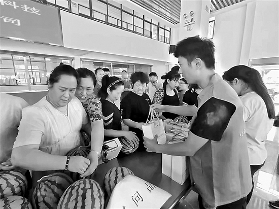 图为志愿服务队虹桥分队走进华骋科技有限公司,为企业一线工人赠送防暑降温物资,详细了解企业当前在生产运行、产能发挥、经营状况等方面存在的困难问题,并积极协助企业解决。 沈磊 丁丽 摄