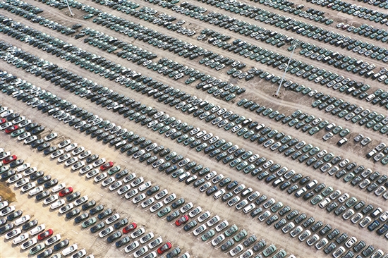这是7月20日拍摄的位于重庆市江北区的长安汽车整车分拨中心一角(无人机照片)。