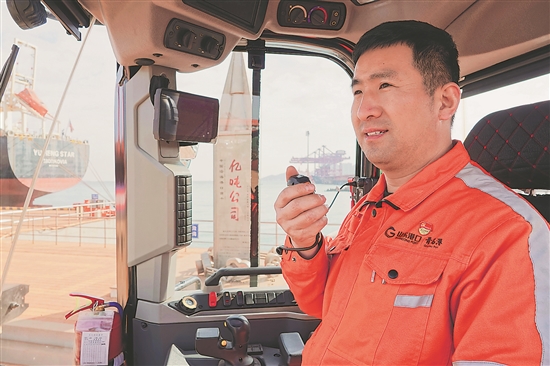 山东港口青岛港前港分公司流机队队长助理郭凯正在操作装载机。王廷军 摄