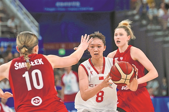 7月30日下午,成都大运会女子篮球预赛D组比赛中,中国队以72∶49战胜波兰队,取得本届大运会两连胜,锁定小组第一出线。图为中国队球员苏源圆在比赛中。本报记者 安彦璟 摄