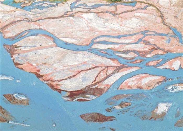 近日,在新疆克孜勒苏柯尔克孜自治州阿克陶奥依塔克冰川森林公园景区入口,奥依塔克河横穿丹霞地貌,五彩斑斓,犹如水粉画。