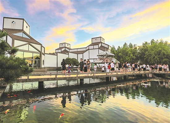 近日,苏州博物馆夜间开放延长至21点,颇受市民和游客的欢迎。阙明芬 摄/人民图片
