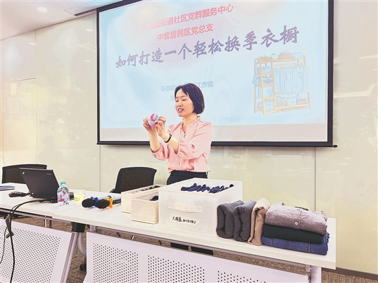近日,朱春南为社区居民开展家居收纳的公益讲座。