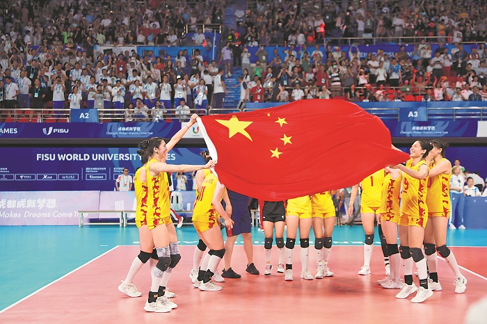 8月6日晚,在成都大运会女排决赛中,中国队以3比0战胜日本队,夺得冠军。