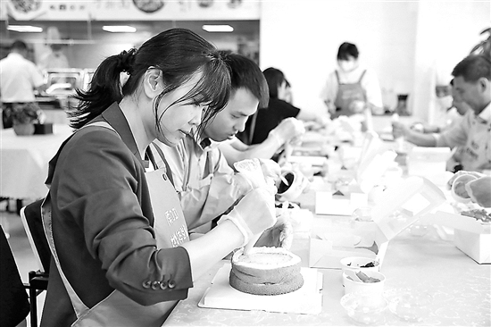 近日,中铁置业西安公司为二季度过生日的员工举办了一场温馨的集体生日会。该公司有不少家不在当地的员工,公司工会把为员工过集体生日纳入关心员工生活和“彩虹桥”品牌的重点工作,让员工感受到大家庭的温暖。图为“寿星”们在制作蛋糕。彭华 摄