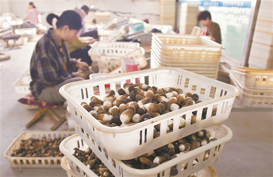 近年来,定陶区因地制宜发展黑皮鸡枞菌产业,带动群众增收就业。目前全区有种植黑皮鸡枞菌的食用菌专业合作社12个,当地已形成黑皮鸡枞菌的菌种制作、菌包生产,食用菌栽培、加工、销售等产业链。新华社记者 徐速绘 摄