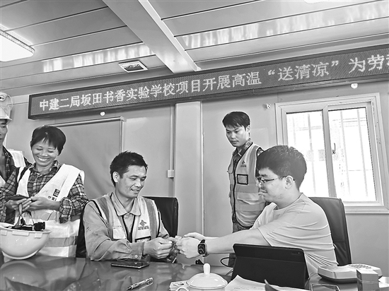 近日,在广东省深圳市龙岗区坂田书香实验学校建筑工地,一名桩基工人趁着轮休空隙前往中建二局坂田书香实验学校项目会议室办理银行卡。