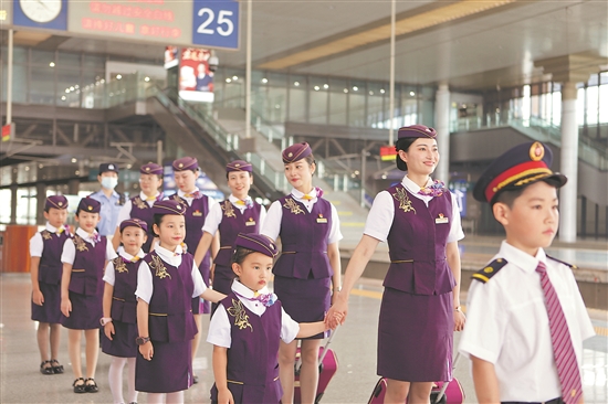 正值暑期,南京客运段联合南京东机辆段、南京动车段开展让职工子女体验父母乘务工作的萌娃夏令营,让孩子们在暑期里收获一段难忘的记忆。