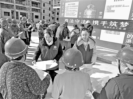 淄博市临淄区总工会“尊法守法·携手筑梦”服务农民工普法宣传活动。