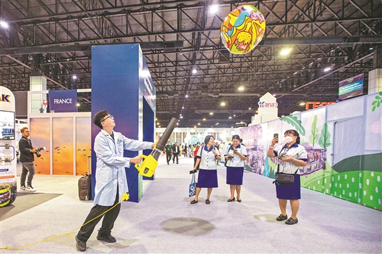 泰国国家科学技术展当地时间8月11日在曼谷开幕,由中国科学院曼谷创新合作中心领衔的30余家中国企业和机构参展。