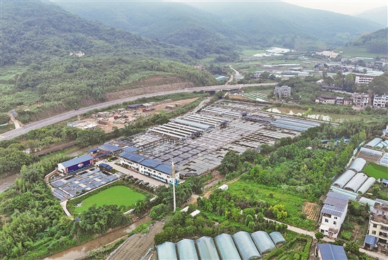 图为无人机航拍的关中村龙头企业潘氏金鱼养殖基地全景。