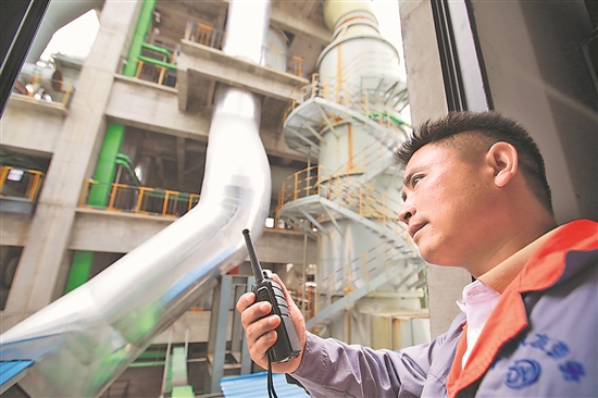 8月14日,工人在贵州磷化绿色环保产业有限公司高温石膏粉生产车间工作。